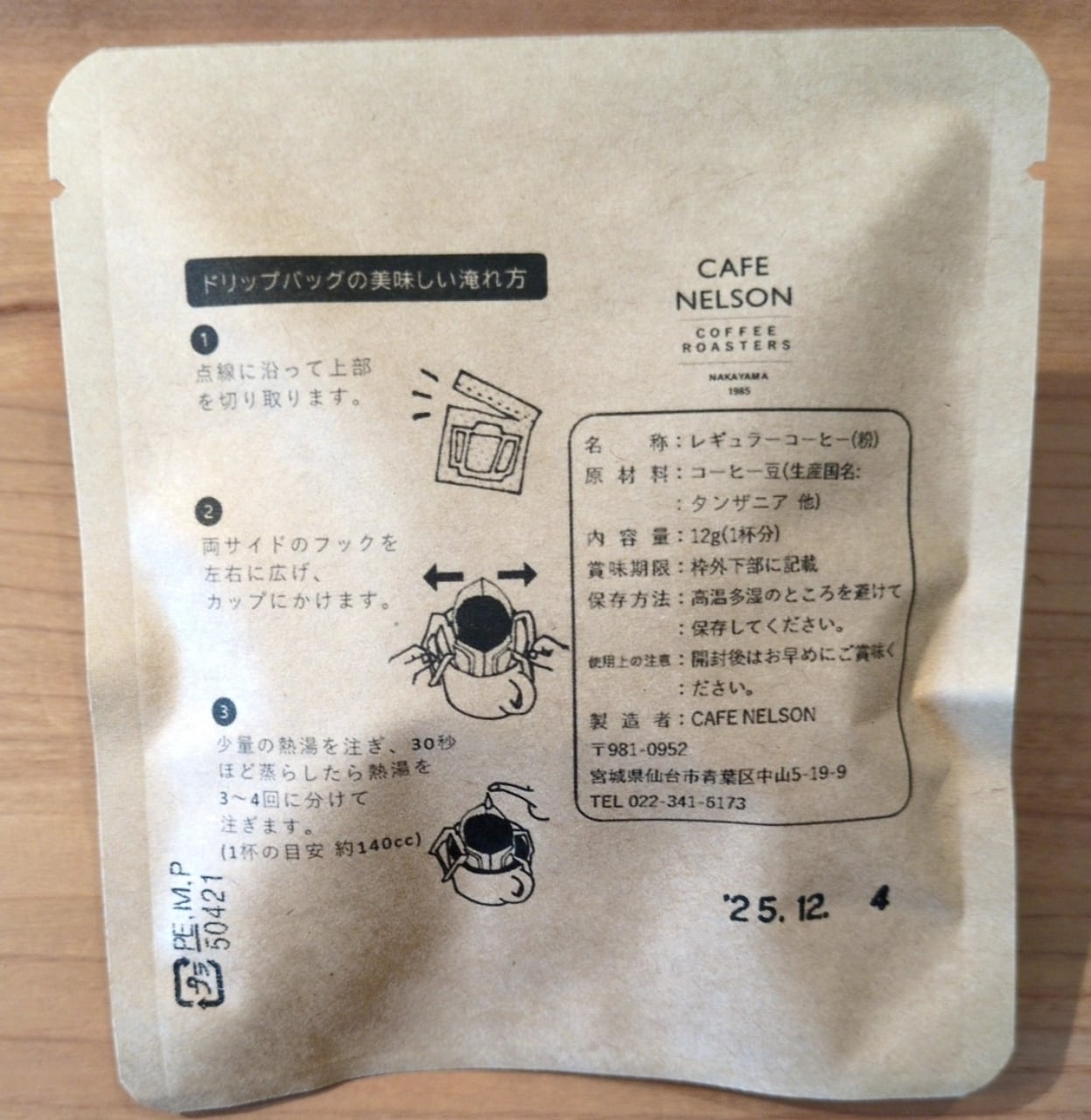カフェネルソンオリジナルブレンド「季節の中山ブレンド」のドリップパック5個セットです。